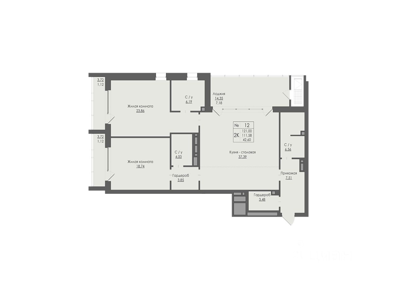 Общая площадь121 м2