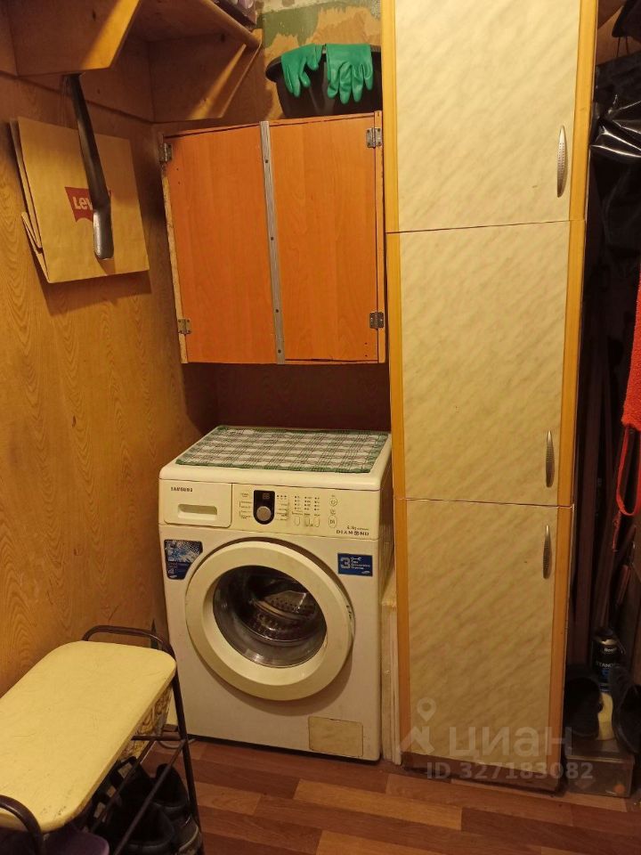 В комнате остаётся холодильник, стиральная машина, диван, стенка, шкаф для одежды.