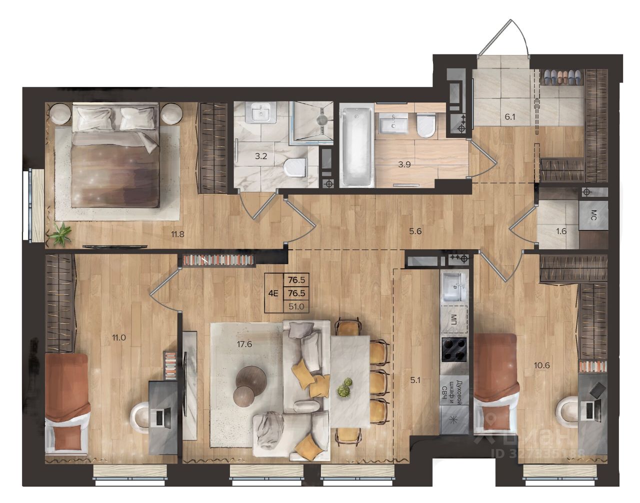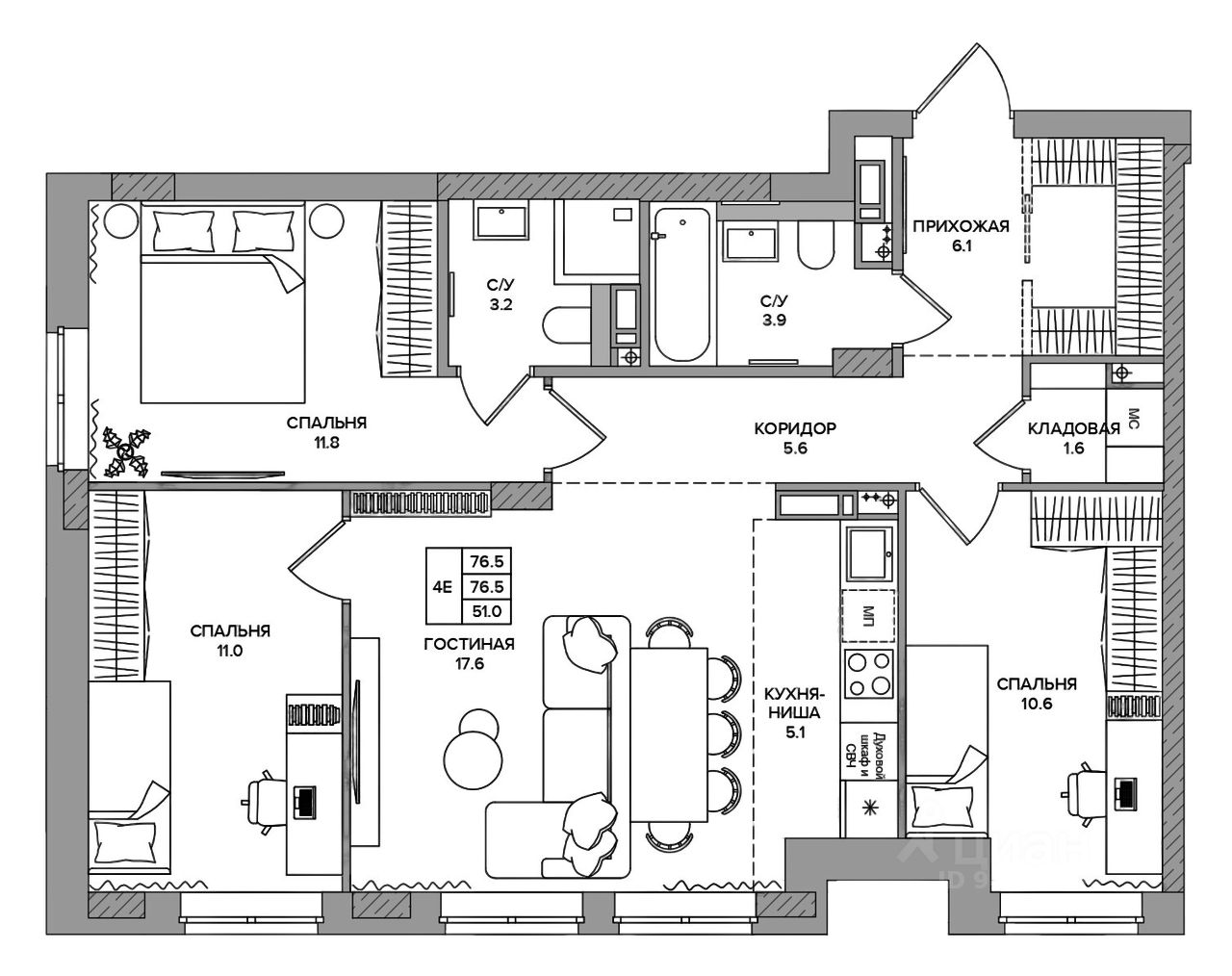 Общая площадь76,5 м2