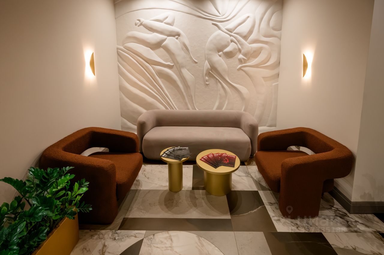 Большая колясочная на первом этаже Дизайнерское лобби с барельефом Паркинг на уровне первого этажа